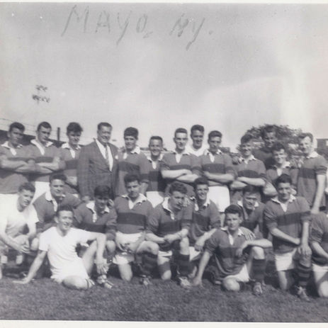 BACK ROW: Bill Henly, Unknown, Fr. Bill Elliot, Unknown, Unknown, Pat McAndrews, Eddie Kelly, Jim Fitzpatrick, Jimmy Mullahy, Tom Fraher, Fr. McAndrews, Jim Forde, Unknown, Unknown, Unknown, Paddy Mongan, Jim Reilly, Darby Mills, John Coyle